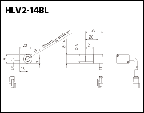 This Light Unit emits blue light and has an outer diameter of 14 mm, a tip diameter of 8 mm, a light-emitting surface diameter of 7 mm, and a total length of 28 mm.
