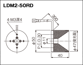 This Light Unit emits red light and has an outer diameter of 50 mm"