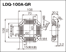 Bar Lights with 15 x 42 mm light-emitting sections are arranged in four directions to form this Light Unit. It emits green light and measures 108 x 108 x 30.2 mm (width x depth x height).""
