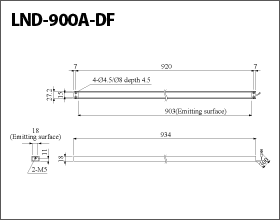 This Light Unit emits red light and measures 934 x 27.2 x 18 mm (width x depth x height). The light-emitting surface measures 903 x 18 mm.""