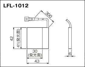This Light Unit emits red light and measures 42 x 43 x 6 mm (width x depth x height). The light-emitting surface measures 41 x 30 mm.""