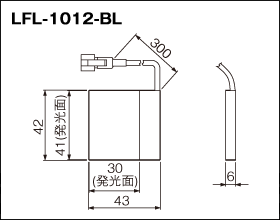This Light Unit emits blue light and measures 42 x 43 x 6 mm (width x depth x height). The light-emitting surface measures 41 x 30 mm.""