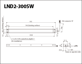 This Light Unit emits white light and measures 332 x 27.2 x 18 mm (width x depth x height).The light-emitting surface measures 301 x 18.2 mm.