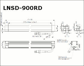 This Light Unit emits red light and measures W 930 x D 30 x H 32.5 mm.
