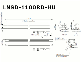 This Light Unit emits red light and measures W 1130 x D 30 x H 32.5 mm.