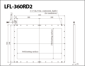 This Light Unit emits red light and measures 310 x 410 x 16 mm (width x depth x height).