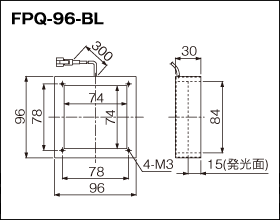 This Light Unit emits blue light and measures 96 x 96 x 30 mm (width x depth x height).""