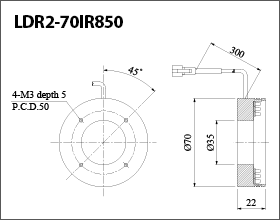This Light Unit adopts LEDs with a peak wavelength of 850 nm and has an outer diameter of 70 mm""