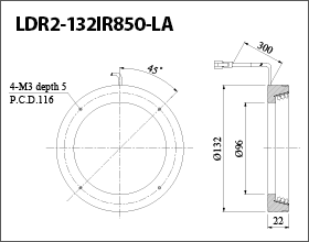 This Light Unit adopts LEDs with a peak wavelength of 850 nm and has an outer diameter of 132 mm""