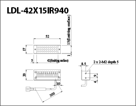 This Light Unit adopts LEDs with a peak wavelength of 940 nm and measures 17 x 52 x 20 mm (width x depth x height). The light-emitting section measures 15 x 42 mm."""