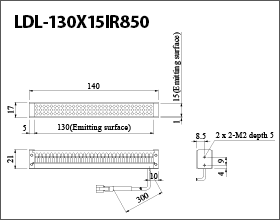 This Light Unit adopts LEDs with a peak wavelength of 850 nm and measures 17 x 140 x 21 mm (width x depth x height). The light-emitting section measures 15 x 130 mm."""