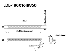 This Light Unit adopts LEDs with a peak wavelength of 850 nm and measures 191.4 x 18 x 21 mm (width x depth x height)."""