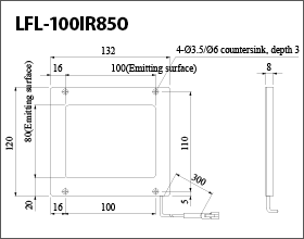 This Light Unit adopts LEDs with a peak wavelength of 850 nm and measures 120 x 132 x 8 mm (width x depth x height). The light-emitting surface measures 80 x 100 mm."""
