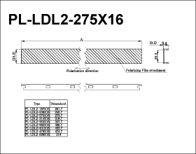 For the LDL2-275X16(-WD)-series Bar Lights.This is a bar-type Polarizing Plate.Use the polarizing plate together with a plarizing filter to eliminate the surface reflection of the workpiece.The end of the model name is -VE: Light is polarized parallel to the shorter edge of the plate.The end of the model name is NOT -VE: Light is polarized parallel to the longer edge of the plate.