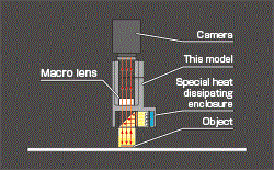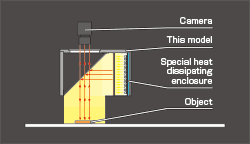 同轴光源MSU系列的定制品。 镜头一体型,实现了简单的光源和相机的光轴调整。 在成像时调整光泽表面上的微小损伤、碰伤、凹陷的程度/在成像时提高验证条件的再现性等。