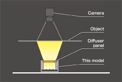通过改变前端的单元,可调节照射光的集光宽度。发光面有60mm和200mm两种类型。采用高功率白色LED和独特的散热结构,实现了高输出。