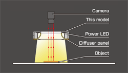 以嵌入式将LED配置在导光扩散板的周围。从形成角度的发光面向中心部对被测物体照射均匀的扩散光。